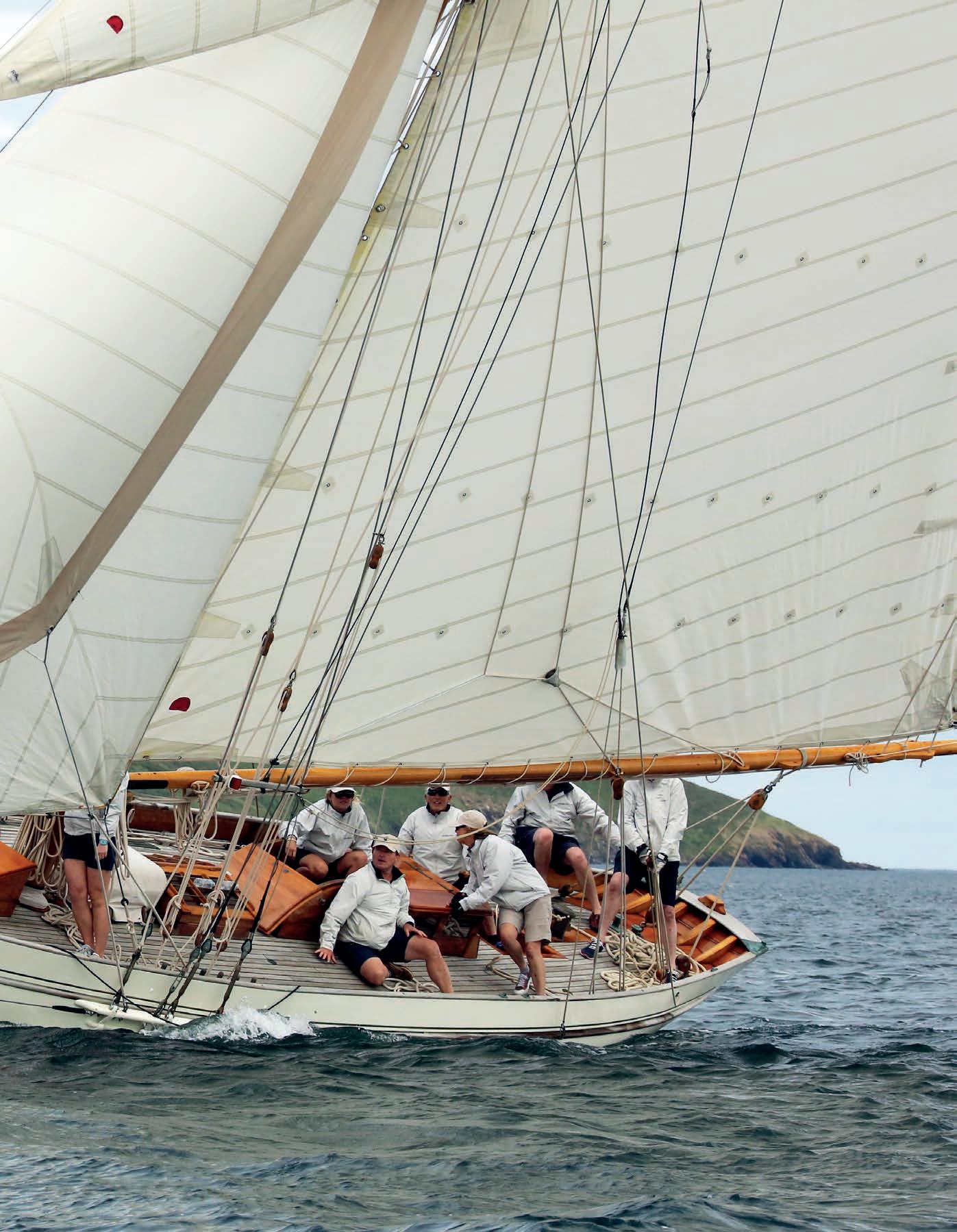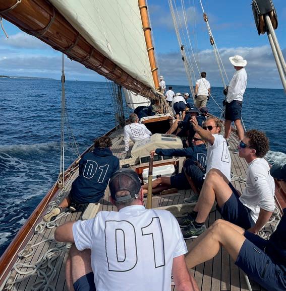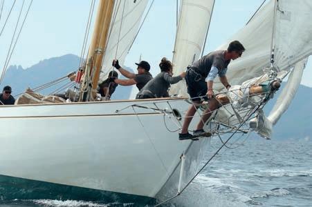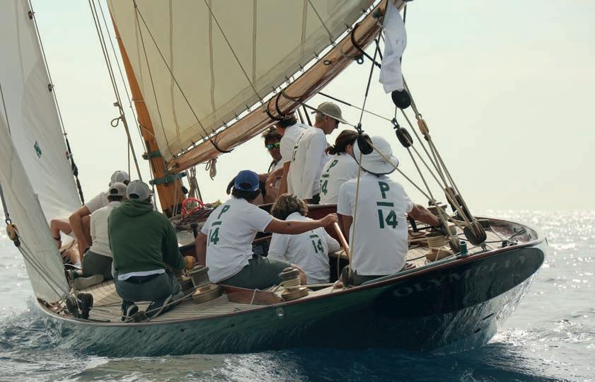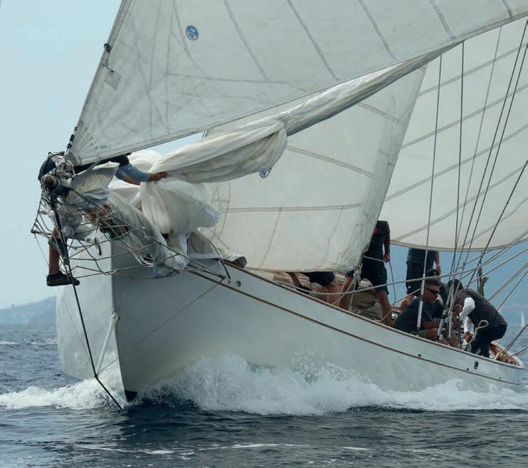 Although racing on two days of Régates Royales in Cannes had to be cancelled (one because of too much wind, the other because of no wind at all) the other three days provided glorious, sunny sailing conditions for the 119 participating vessels. The only boats to win a clean sweep of race victories were William Borel’s 1948 6-Metre One Wave in the Epoque Marconi (EMB) Class and Martin Cross’s Beta Crucis in the 5.5-Metre Class. In the Big Boat Class the race wins were shared between the 1929 Bermudan staysail schooner Viveka and the 15-Metres Tuiga and Mariska, with overall victory going to the last. The biggest class, with 34 boats, were the Dragons, the winner of which was Anatoly Loginov with Christoph Toepfer’s Aurora and Yevgen Braslavets’ Transbunker close behind. The 12-Metres took part in nine windward-leeward races: Bouwe Bekking’s 1939 Vim won the Vintage division, and Richard Matthews’ Crusader (which, as White Crusader, was Britain’s challenger for the 1987 America’s Cup) the Grand Prix/Modern division, with the latter taking overall victory. There were other class wins for the 1905 New York 30 Oriole, the 1946 S&S yawl Comet, the 1969 S&S One Tonner Arcadia III and the 1956 Argynne III. Also taking part were representatives of no fewer than four di erent Universal Rule classes: the 1938 N Class Serenade; the Ps Olympian, Corinthian, Joyant and Chips (all built between 1911 and 1913); the 1930 Q Falcon (originally Falcon II and later Jour de Fete); and the 1925 Fife-designed R Class Fifi