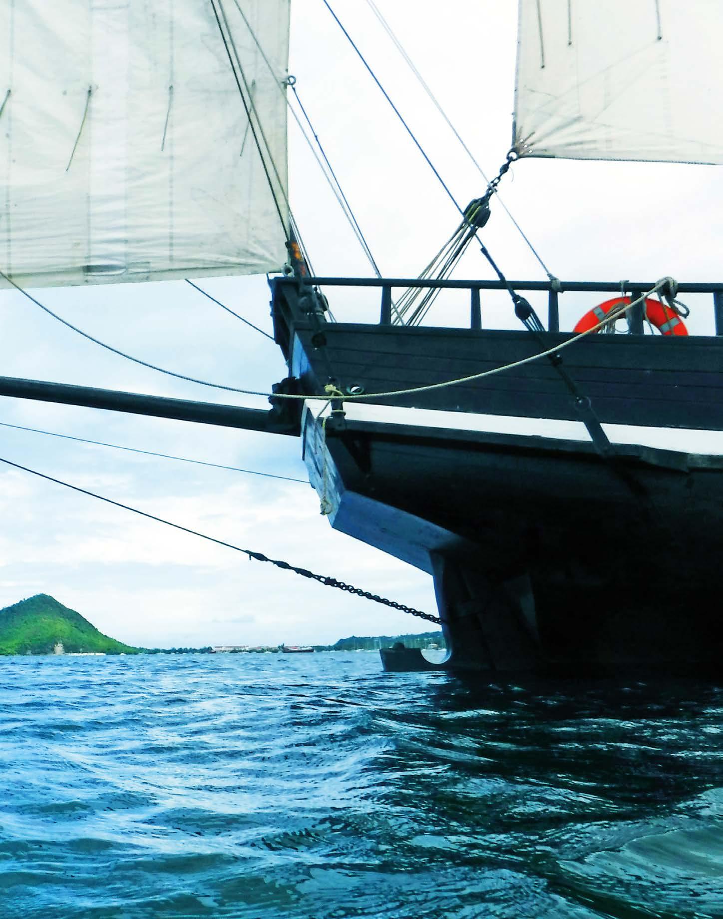It was no ordinary Monday morning. Eleven of us were on board the three-masted lugger Grayhound, anchored off the small town of Saint-Louis on the Caribbean Island of MarieGalante and preparing to set sail towards Guadeloupe. With the calm patience and attention to detail to which we had become accustomed over the previous few days, skipper Filémon Darbois explained the step-by-step process by which we would sail off the anchor while avoiding the mass of other anchored boats that surrounded us.