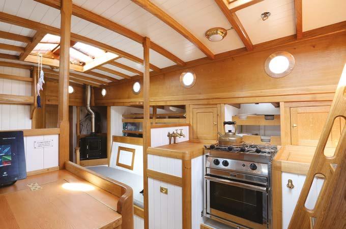 The engine is a Beta 35hp diesel; the engineering and electrical installation was done by Andrew Cox Marine, the instrumentation by BT Marine (Electronics); the stainless steel water and fuel tanks were fabricated by Keefe Engineering, and the Hobbit stove was supplied by Salamander Stoves in Devon.