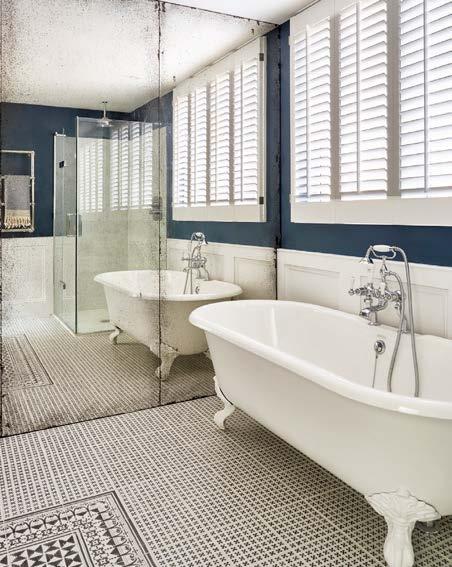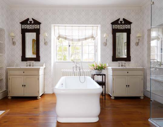 RIGHT Little Greene’s bespoke Colour Consultancy service offers the opportunity to work with the brand to recreate historical shades as well as create entirely new bespoke colours. LEFT This elegant bathroom by Henriette von Stockhausen of VSP Interiors features Richmond Trellis wallpaper in a bespoke colourway by Hamilton Weston, whose wallpapers can all be custom coloured. The company also develops designs from clients’ vintage fabrics, maps, prints, photographs, drawings or artefacts.