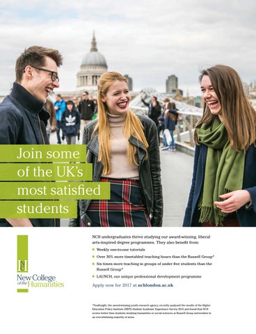 Join some of the UK’s most satisfied students NCH undergraduates thrive studying our award-winning, liberal arts-inspired degree programmes. They also benefit from: Weekly one-to-one tutorials Over 30% more timetabled teaching hours than the Russell Group* Six times more teaching in groups of under five students than the Russell Group* LAUNCH, our unique professional development programme