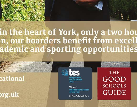 According to the Independent Schools Council, the membership body which oversees the majority of private schools in the UK, more and more parents are choosing to educate their child in the sector, with 554,243 pupils enrolled. The reasons for this shift are wide-ranging: a broad, bespoke curriculum, smaller class sizes and excellent exam results, as well as outstanding facilities. Read more about this surge in Elizabeth Ivens’ piece on page 14. From procuring goods and services to local employment and the ripple e ect of bringing students and visitors to the UK, the impact independent schools have on the national and local economy is felt far and wide. Thalia Thompson shares suprising stats and her own findings on page 50.
