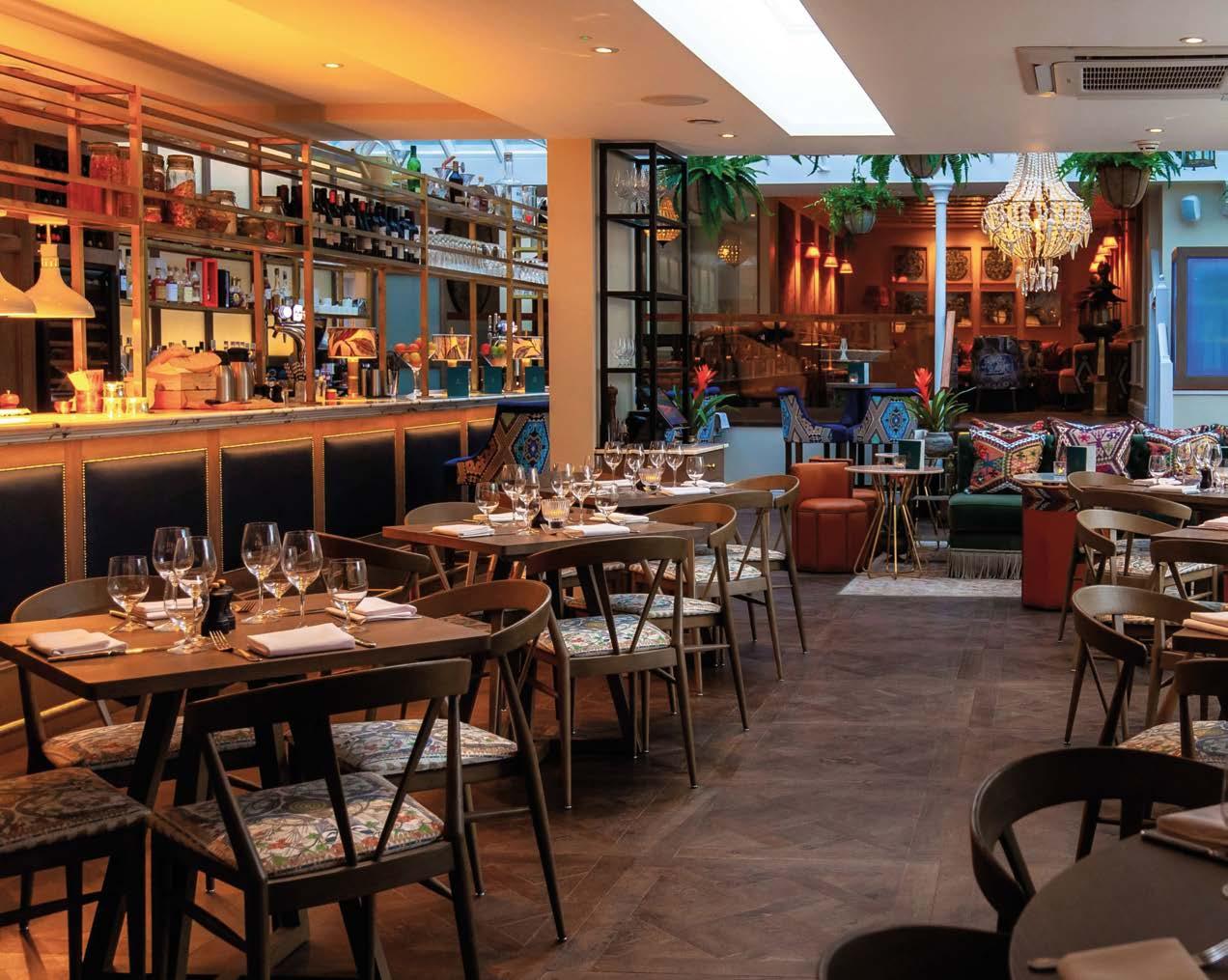 Ravenous a er a day’s browsing the shops in the village and a hearty a ernoon walk, we made our way to e Gate, the hotel’s all-day dining concept which has fast established itself as a culinary destination in the area. We visited on a Friday night, when it was buzzing and lively with hotel guests, local professionals and Richmond residents eager for some a erdark downtime at the start of the November weekend. Shown to our table by the maître d, as we perused our menus he informed us that the produce served was locally sourced and grown, with wild-caught sh and seafood