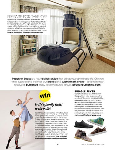 Peachick Books is a new digital service that brings young writing to life. Children write, illustrate and title their own stories and submit them online – and then they receive a ‘published’ copy to be treasured forever. peahenpublishing.com J U N G LE F EVE R