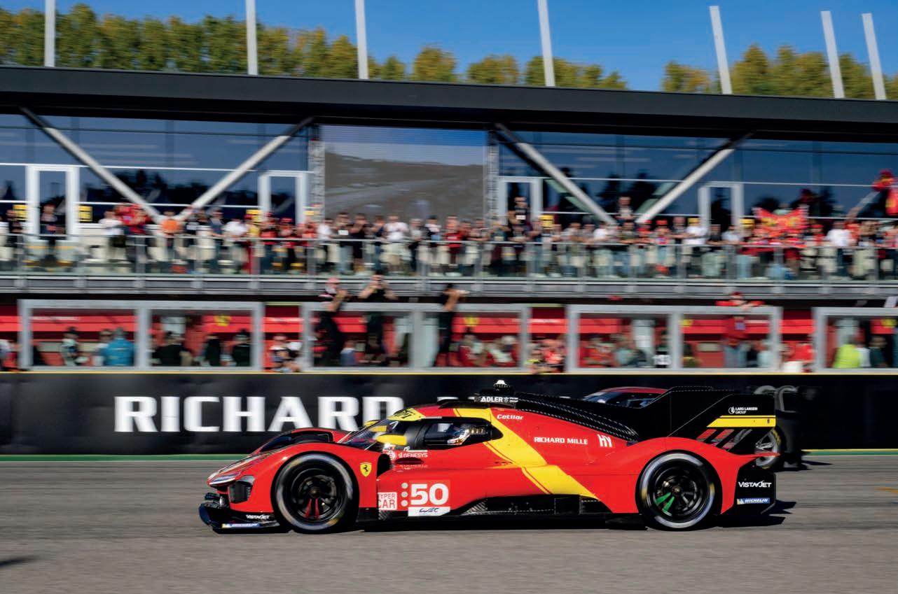 The LMDh concept featured a cockpitadjustable front anti-roll bar and so, with the hybrid system changed to an open diff’ and deployment speed set high, this was also introduced to the LMH car. As the change came late, many of the LMH manufacturers, including Ferrari, had to retrospectively find room for it.