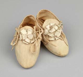 Among the almost 100 other artworks from The Royal Collection are a rarely seen portrait of Queen Charlotte by Thomas Gainsborough (main picture), while a pair of baby shoes (inset) belonging to George IV’s only child, Princess Charlotte, are enough to make any heart melt.