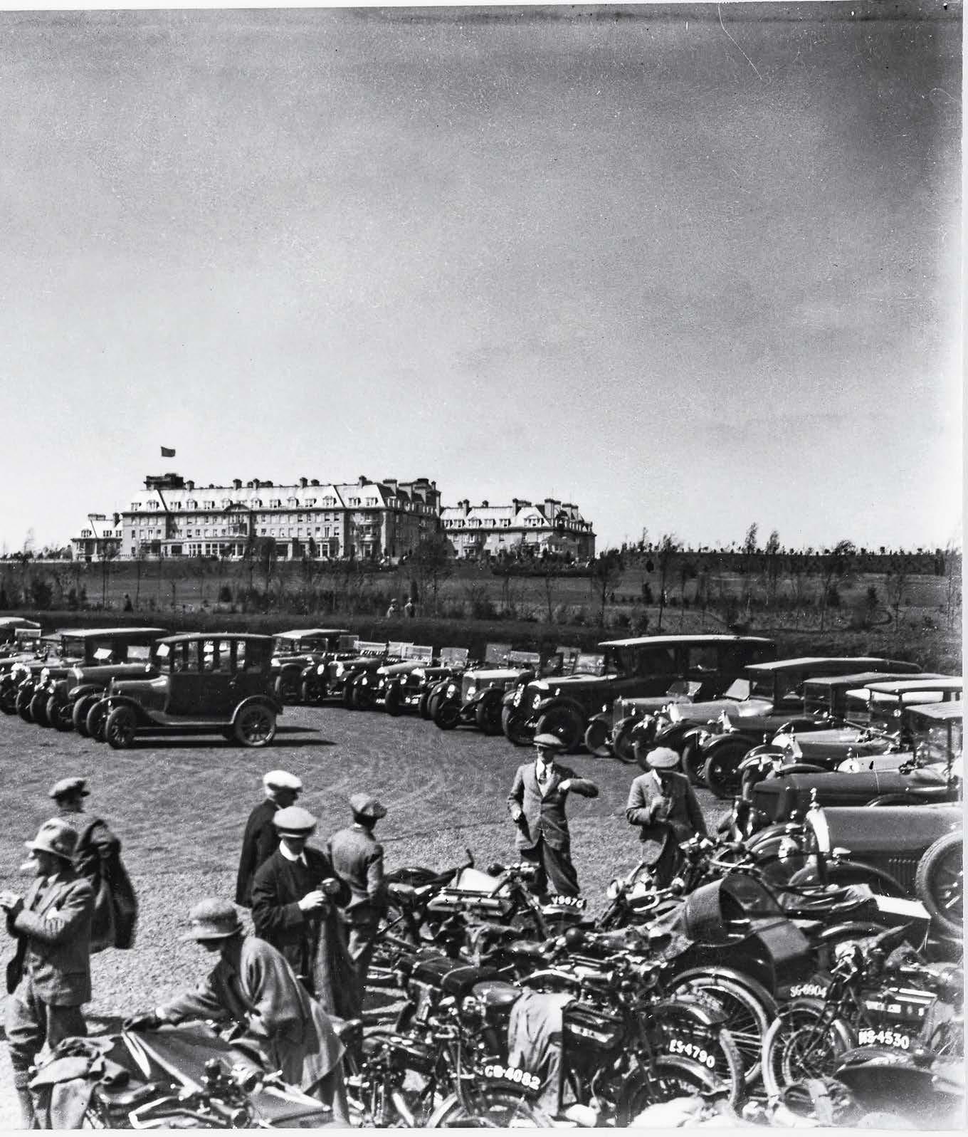 Gleneagles was the brainchild of Donald Matheson, general manager of the Caledonian Railway Company, who imagined an elegant country house hotel combined with quality golf courses. Matheson enlisted the skills of James Braid, a ve-time winner of The Open, to design and create The King’s and The Queen’s courses in the hotel grounds. The courses opened in May 1919, ve years before the hotel, establishing Gleneagles as a gol ng destination from the get-go. This photo (right) which appears in James Collard’s forthcoming book Gleneagles: Stories from the Glorious Playground, published by Rizzoli New York, shows spectators in the 1920s arriving at Gleneagles to watch a golf tournament.