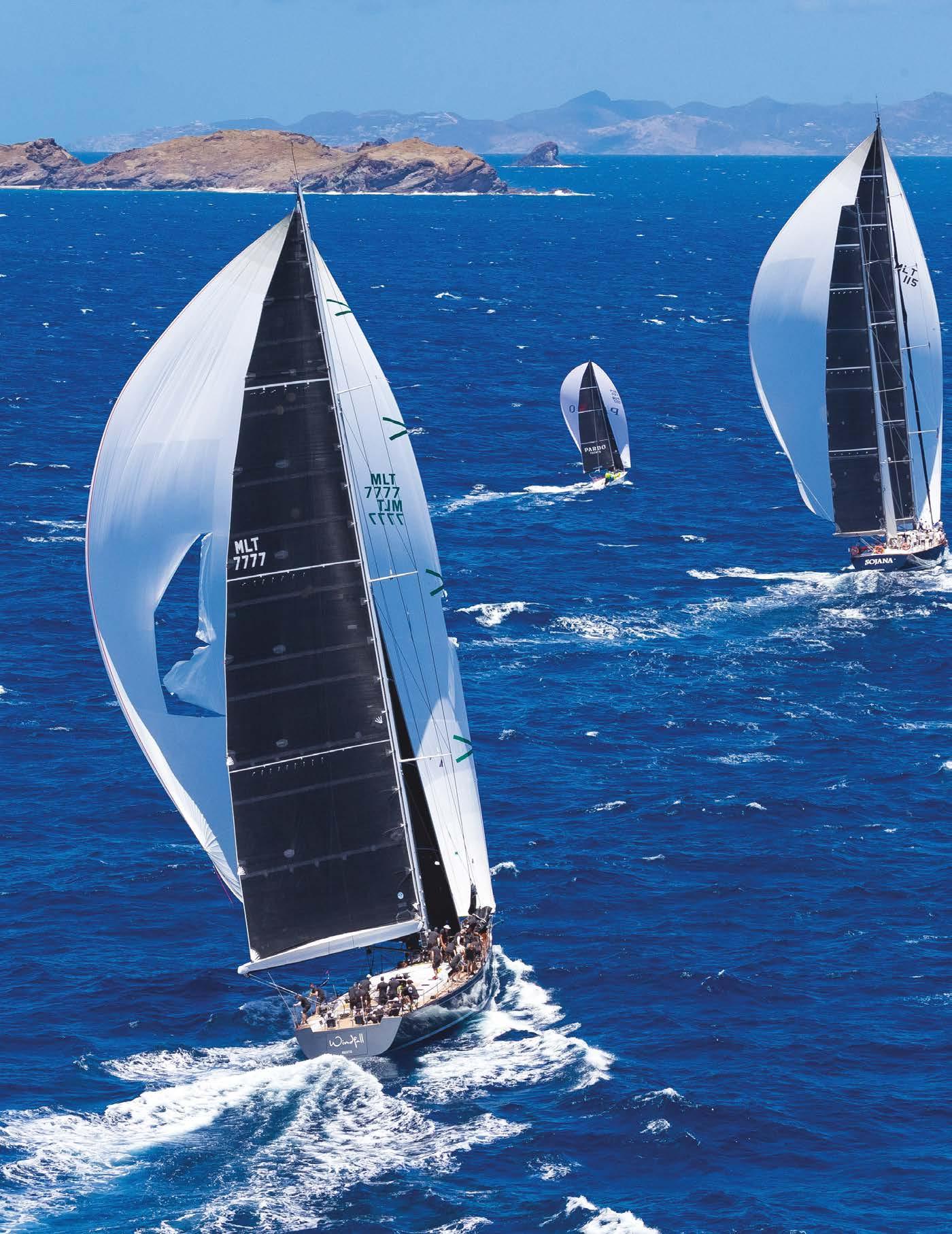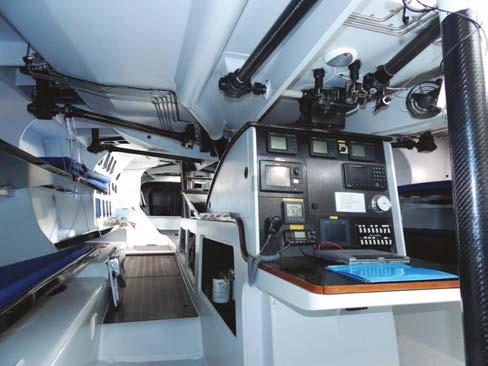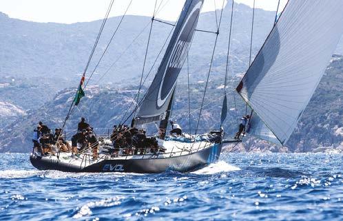 This new foiling boat, FlyingNikka, in the style of an AC75 used in the America’s Cup, stole the headlines at Les Voiles de SaintTropez in October. Designed by a team led by Irish designer Mark Mills, the 19m posted speeds in excess of 40kts. She was built in Valencia at the King Marine yard. Team manager Alezio Razeto said: “The owner, Roberto Lacorte, was keen to have a thoroughbred race boat, built for speed. We’d witnessed the development of foils on the IMOCA class sailboats and the America’s Cup yachts, so we said to ourselves: why don’t we have articulated foils on a race boat in the Mediterranean? It’s Roberto Lacorte, the owner, who helms the boat. The crew largely has an America’s Cup background. Helming a foiler isn’t the most di cult aspect. The real di culty lies in trimming the sails and the foils. There are a huge number of elements which need configuring to get her up on a plane, airborne and nicely balanced, especially given that the pressure in the sails is never constant. Adjusting the foils is the most complicated element, particularly when you’re flying along at over 30 kts!”