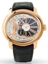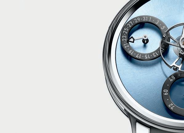 Split escapement with the balance wheel suspended above the dial Titanium case, FlexRing damping system
