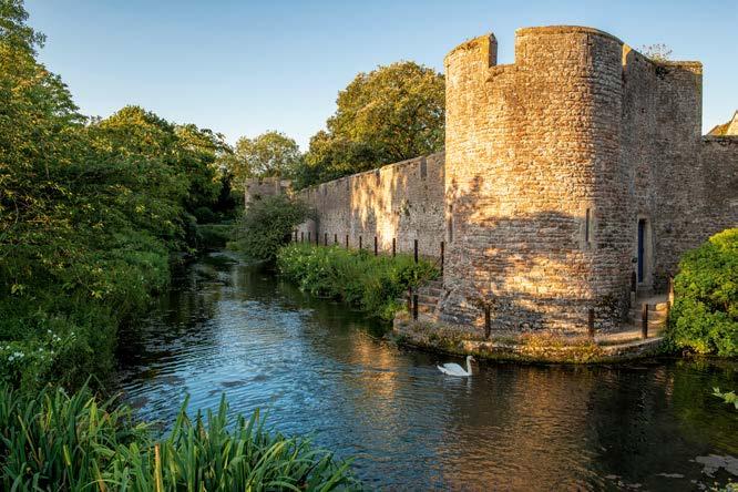 Cross the drawbridge over the moat and pass through the Gate House into the garden. A sense of historical wonder surrounds you. It’s like walking into a di erent dimension; literally stepping back in time. The palace itself dates back to 1206, the chapel having been constructed with the Great Hall in the 1270s, and the North Wing and fortifications, including the moat, completed around 1340.