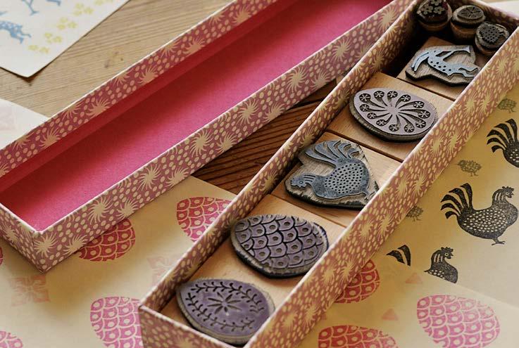 Any special occasion can be made all the more memorable with the addition of thoughtful handmade touches. Decorate personalised place cards for the Easter table with the motifs of the season using Cambridge Imprint’s Easter Printing Block Set (cambridgeimprint. co.uk). This set of eight easy-to-use printing blocks will depict patterned eggs, a speckled hen, a chick and a dancing hare. The blocks could also be used to make pretty greetings cards or even your own wrapping paper.