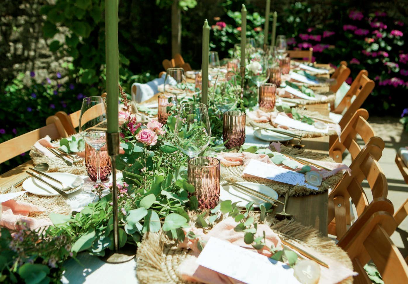 70 PARTY IN THE GARDEN Set the scene for an outdoor gathering with elegant tableware and pretty accessories.