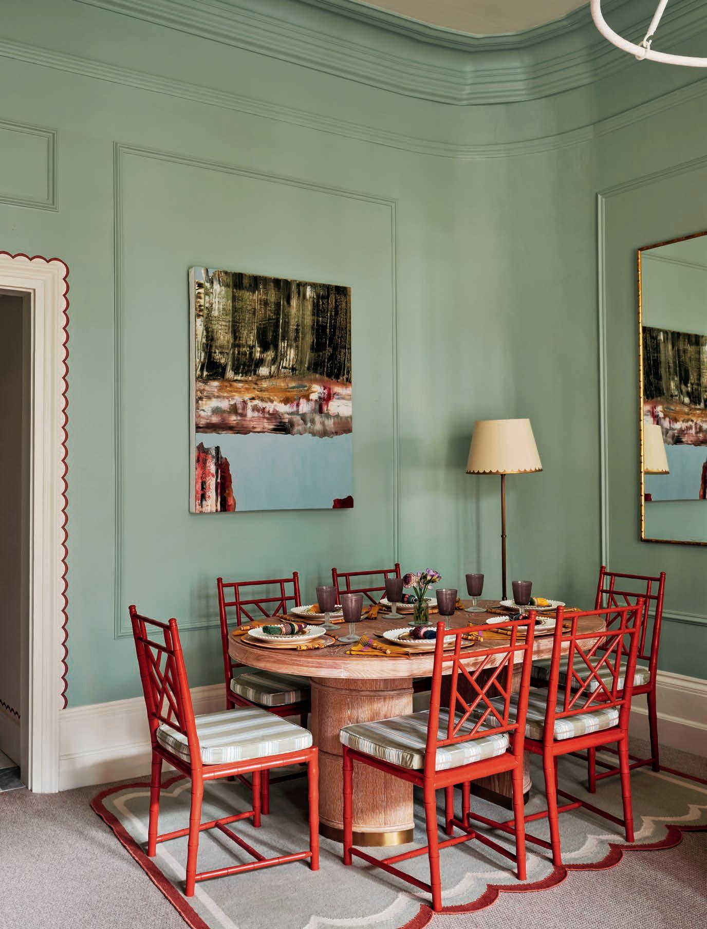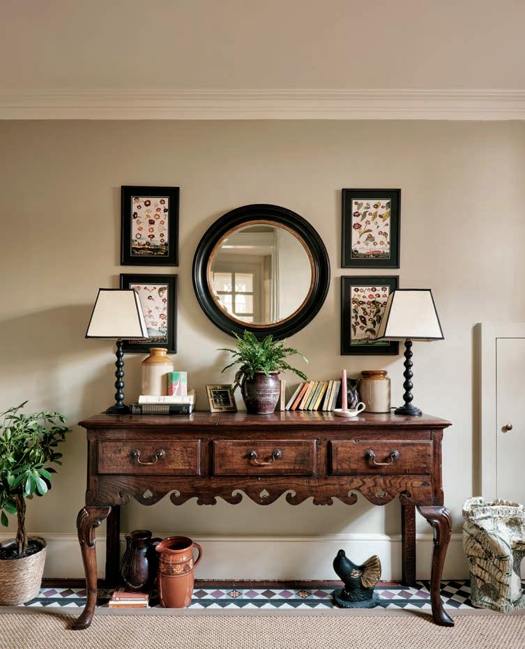 I’ve loved curating and collecting antiques and vintage pieces – like my reclaimed butler sink – over the years, and mixing them with new ones. I have some lovely furniture from Oka that I’ve used here and in our London home. And I’m particularly drawn to different shades of green. I have used a lot of different Farrow & Ball colours in the house, but Cardamom, a rich brown, and Card Room Green are favourites.