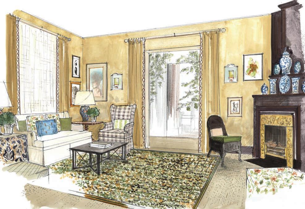 Illustration by Philip Hooper. WOW!house 2024Colefax and Fowler Morning Room by Lucy Hammond Giles of Sybil Colefax and John Fowler