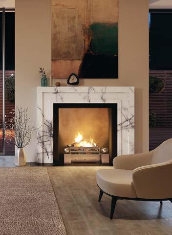 ALL AGLOW Clockwise from left: From the EcoSmart’s Flex Fireplace Series, stonewoods.co.uk; the Wychwood woodburning stove creates a stunning focal point in your home, acrheatproducts.com; an original piece from an Italian monastery, sourced by Owen Pacey, renaissancelondon.com; one of the most popular designs in Chesney’s Contemporary Collection, the Manhattan classic, chesneys.co.uk. Previous page: Roma fireplace in black marble by Jamb, shot by Michael Sinclair, jamb.co.uk