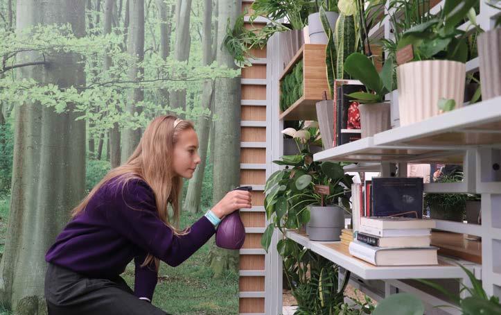 The stand displayed a recreation of the school’s sixth form centre, with its carefully chosen selection of indoor plants such as low maintenance spider plants, Chinese money plants and dwarf palms. During a nine-month study at the school, the right combination of the right plants in a specific ratio saw an improvement in air quality, the removal of chemical toxins and an increase in humidity. Overnight in the school’s biophilic classrooms, air quality increased by 10 per cent and humidity by 7 per cent.