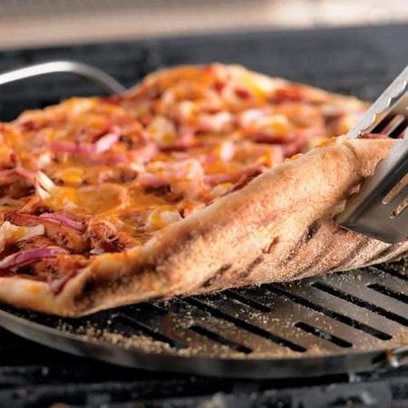 3. Placepizzapanongridofgrill.Grill,covered,1822minutesoruntilcrustisdeepgoldenbrown, carefullyrotatingpanoccasionallyusing SiliconeOvenMitt.Removepizzapanfromgrill. Sprinklepizzaevenlywithadditionaloregano,if desired.Removepizzafrompan;cutpizzainto 12slices.