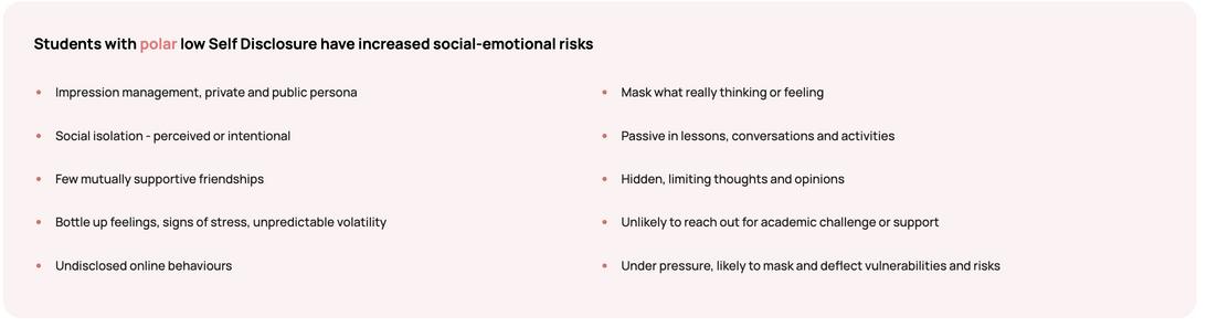 Self Disclosure measures how visible we make our thoughts, ideas, opinions and feelings to others Like a theatre, we can share our thoughts, ideas, opinions and feelings with an audience on our frontstage, or we can keep them private on our backstage
