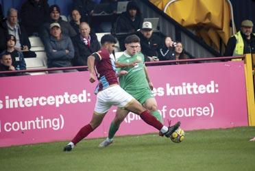 Ten minutes in, a good block by James Wilson stopped a goal-bound shot and 2 minutes later the miss of the match occurred when Courtney Clarke headed over the bar from 6 yards, a let off!!