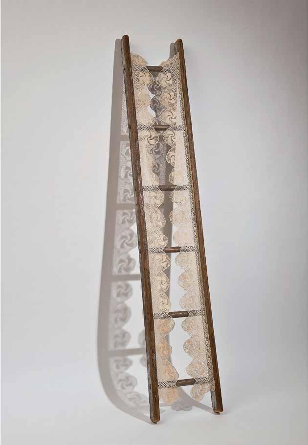 Nancy OD Wilson, I'll Build a Stairway to Paradise, ladder, stu ed fabric, 12.7 × 50.8 cm