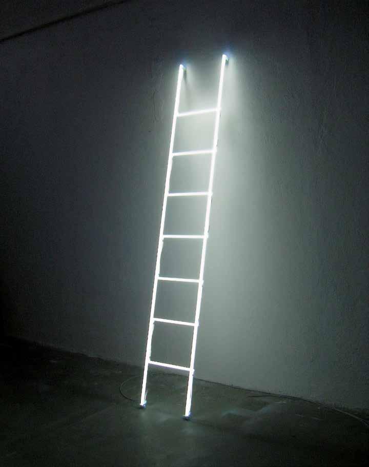Carmela Gross, Ladders, 2012, industrial ladders and white uorescent lamps