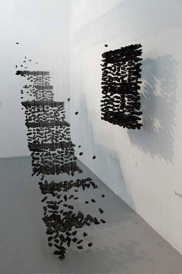 Seon-Ghi Bahk, Panorama (detail), 2007, charcoal, nylon threads, stone, h. — 300 cm