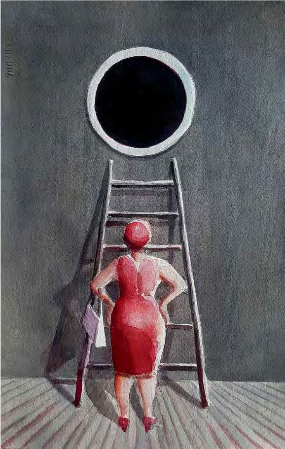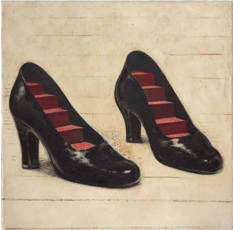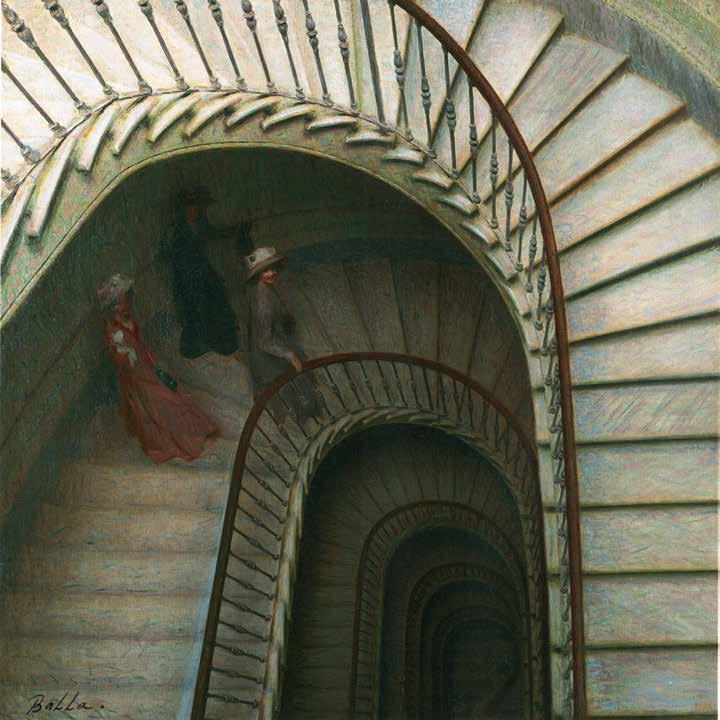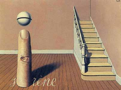 The stairs in Rene Magritte’s 1936 painting “Forbidden Literature”, which addresses the duality of the world and the transition to another space, play a completely di erent role. Here among multiple absurd ele -