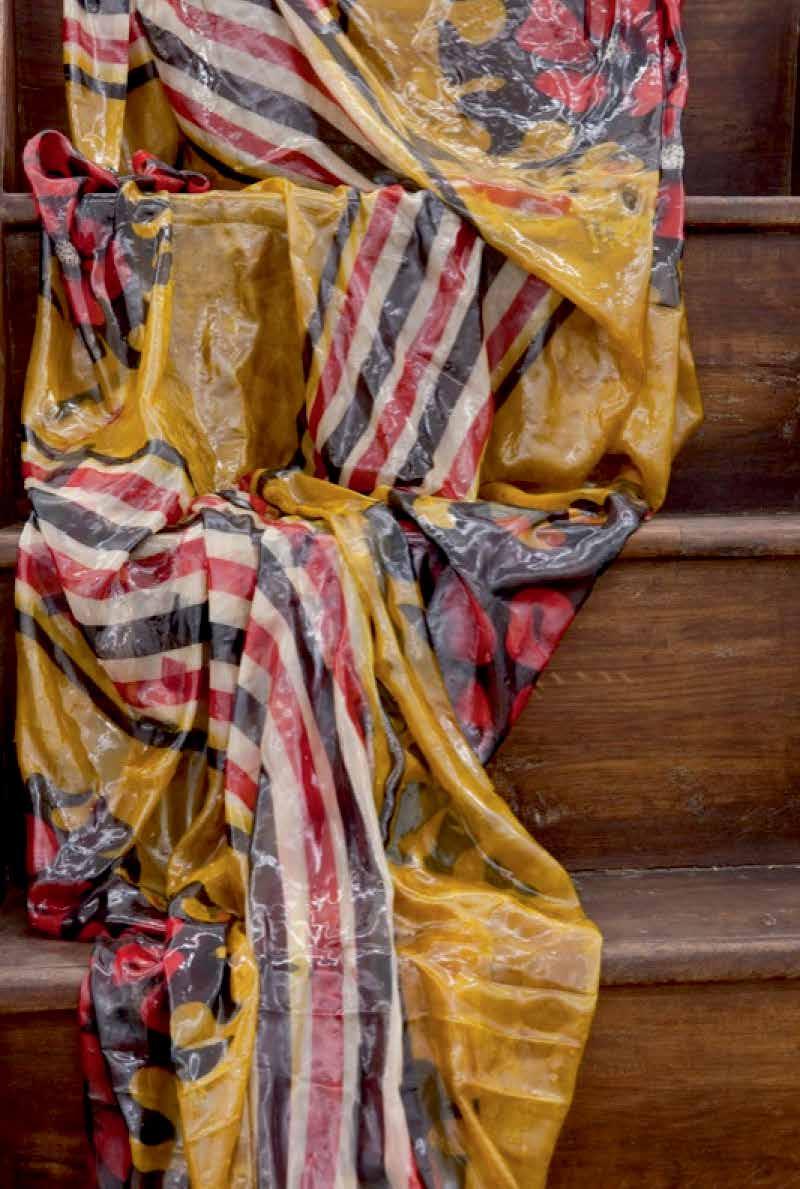 Bharti Kher, The night she left (detail), 2011, wooden staircase, fabric, bindis, 226 × 91 × 80 cm