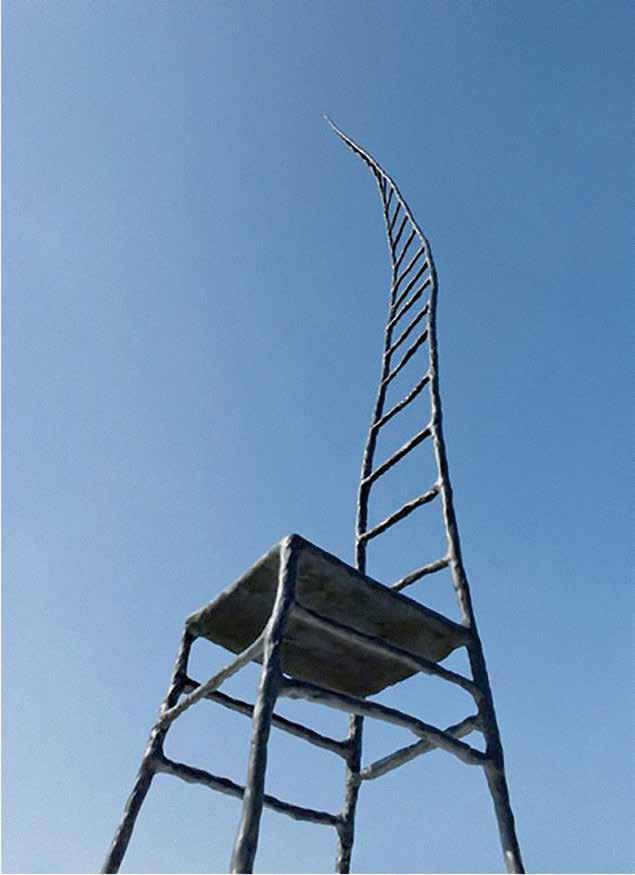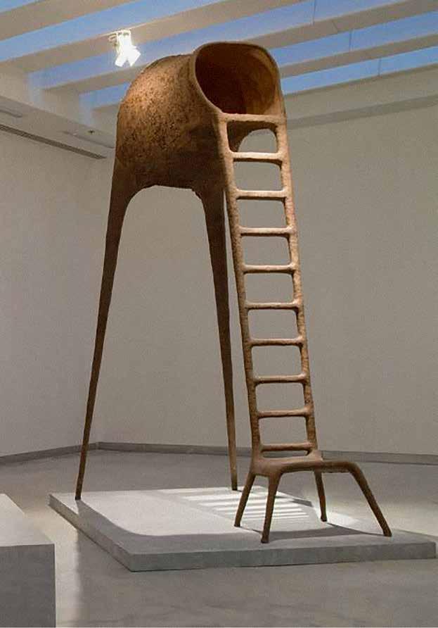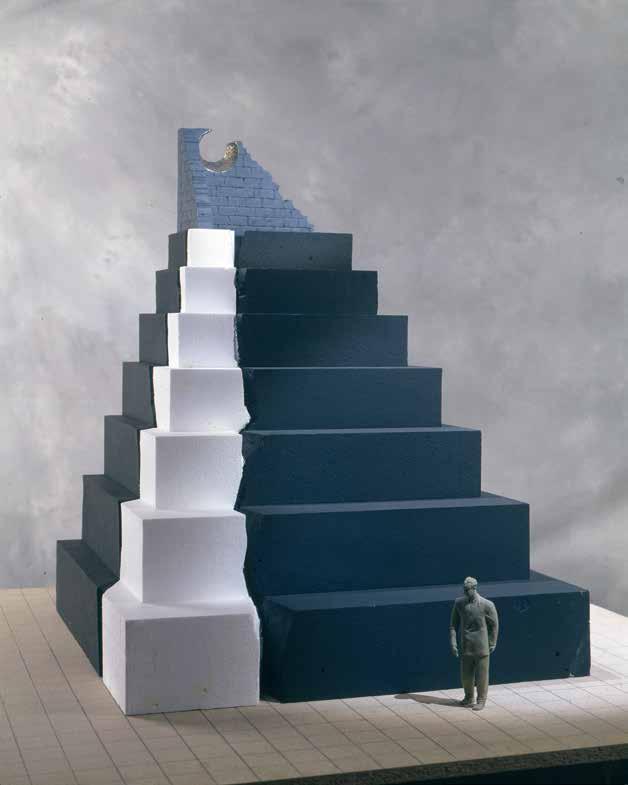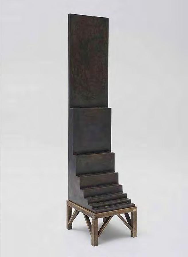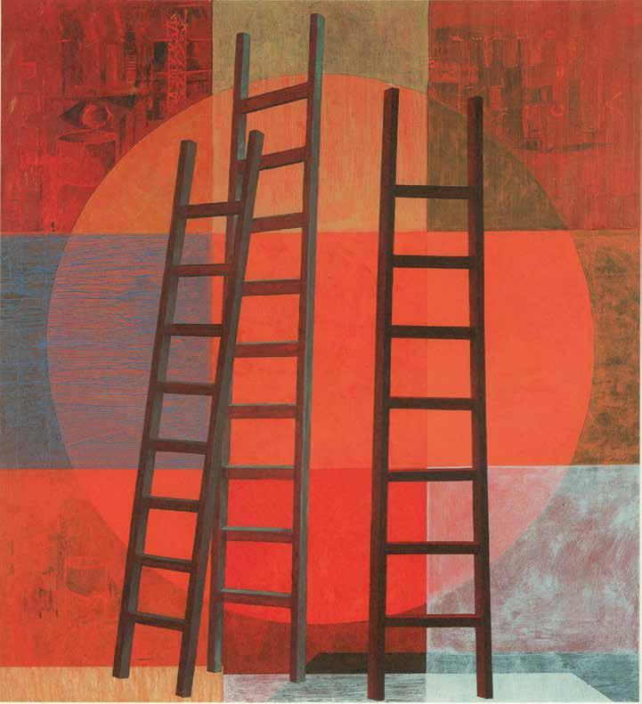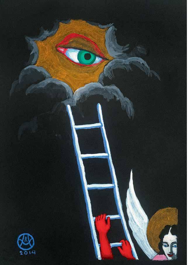 Mihail Chemiakin’s research on “Stairs, Ladders and Steps in Life, Consciousness, and Art” examines and interprets this archetype as it appears in the work of modern artists. Archetypes take form as symbols through the process of objecti cation. “Ladder” symbolism not only unites many religions and worldviews, but also through its system of imagery reaches across time. We nd the theme in the Babylonian ziggurat, in the Christian icon, in African ritual objects. The very shape of ladders and stairs, consisting of vertical and horizontal lines, is imbued with inter-cultural symbols: vertical lines literally suggest ascension and progress, horizontal lines evoke the ancient sign of the horizon and of passive contemplation. When connected in the form of a ladder, they become a universal metaphor for the spiritual path.