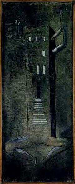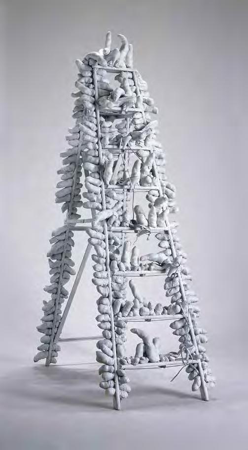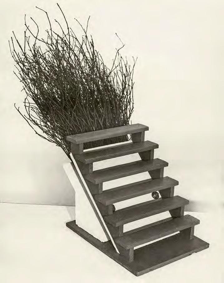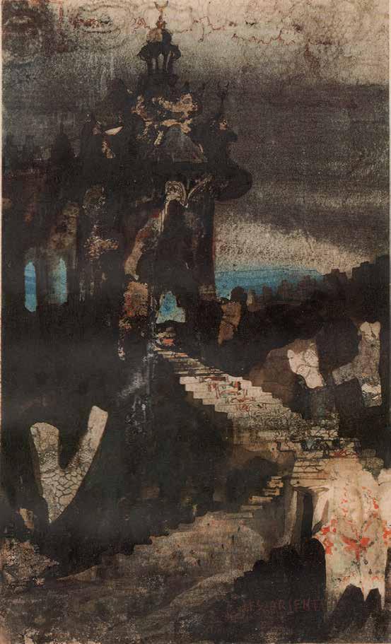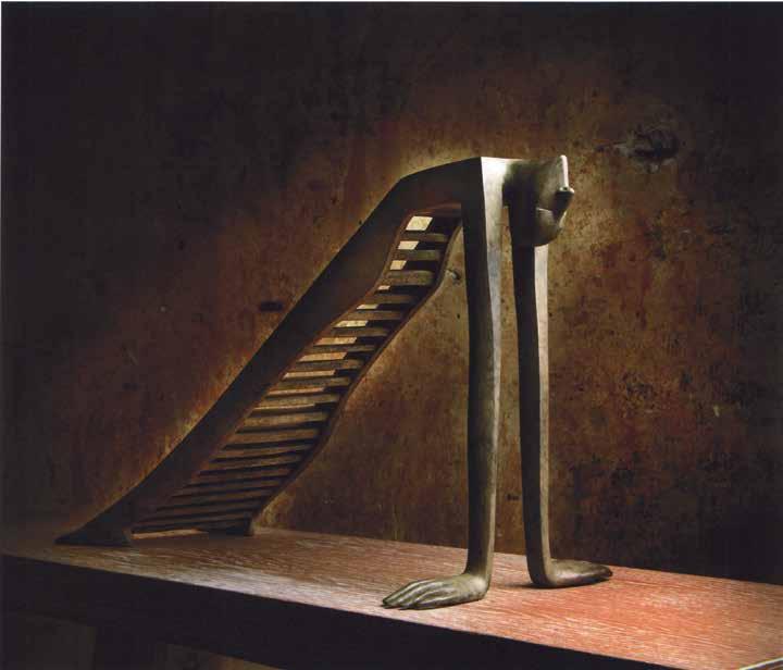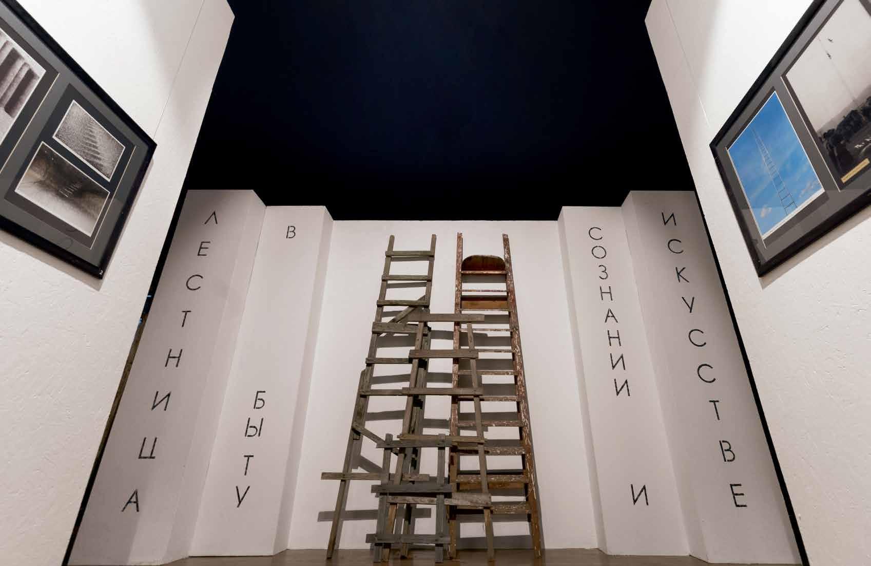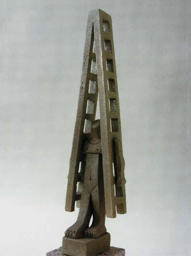 Mihail Chemiakin’s research on “Stairs, Ladders and Steps in Life, Consciousness, and Art” examines and interprets this archetype as it appears in the work of modern artists. Archetypes take form as symbols through the process of objecti cation. “Ladder” symbolism not only unites many religions and worldviews, but also through its system of imagery reaches across time. We nd the theme in the Babylonian ziggurat, in the Christian icon, in African ritual objects. The very shape of ladders and stairs, consisting of vertical and horizontal lines, is imbued with inter-cultural symbols: vertical lines literally suggest ascension and progress, horizontal lines evoke the ancient sign of the horizon and of passive contemplation. When connected in the form of a ladder, they become a universal metaphor for the spiritual path.
