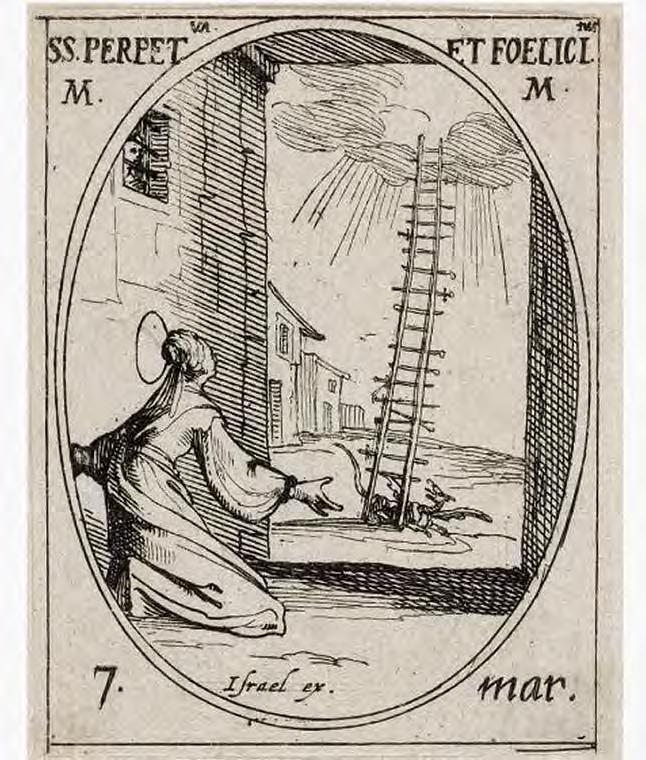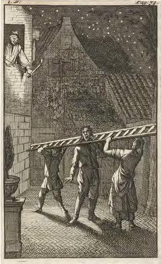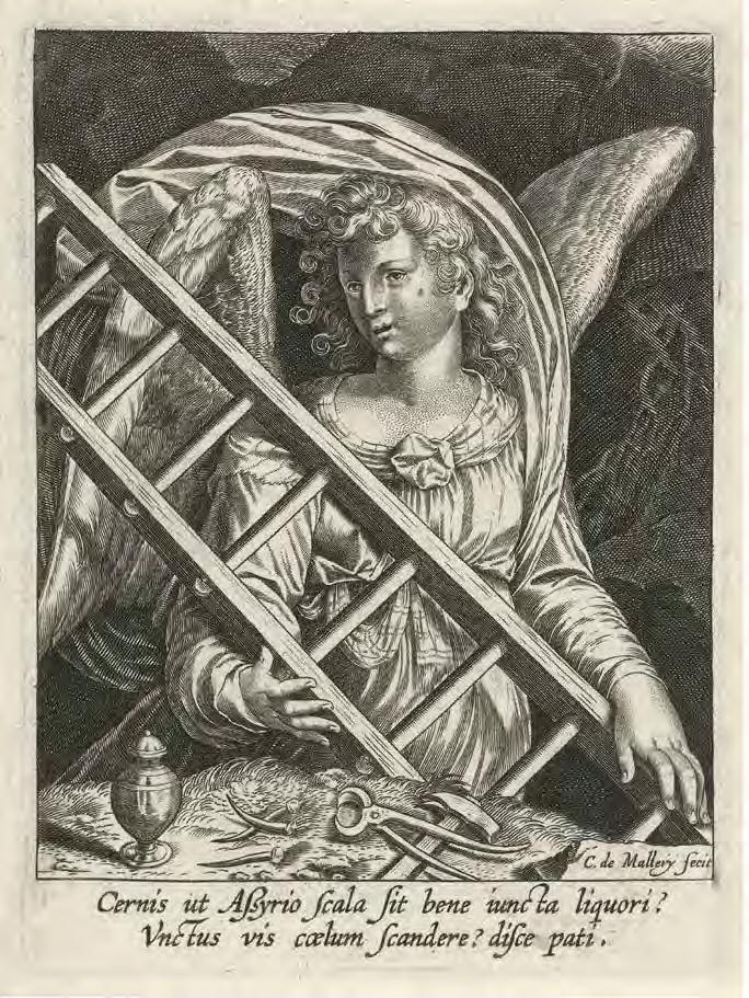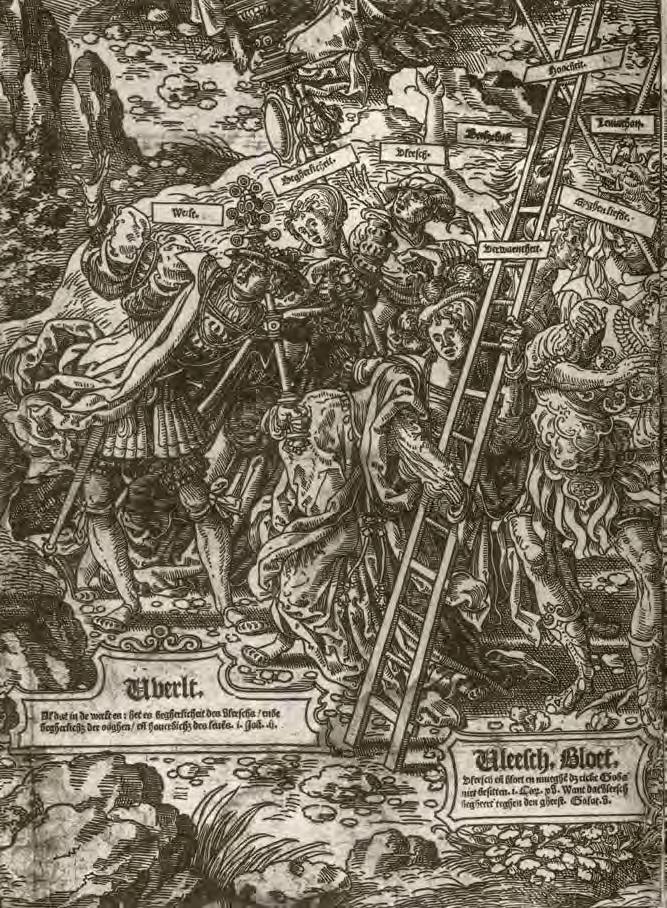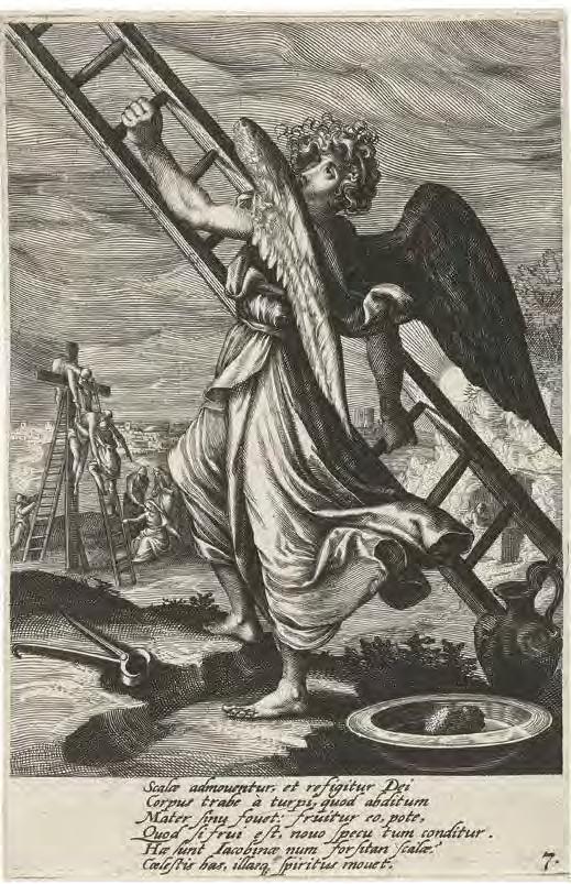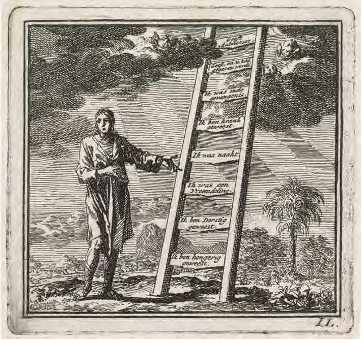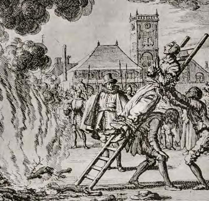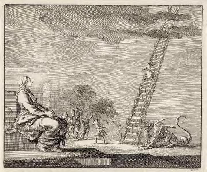to the cross. Thenceforth the ladder is frequently an attribute of execution. For example, Jan Luyken’s 1685 etching, “Anneken Hendriks, tied to a ladder and burned in Amsterdam in 1571” (V1 : 119), depicts the execution of a woman condemned for heresy. Here the ladder itself, in an analogy to the cross, is the instrument of execution.