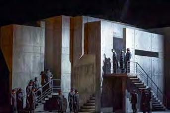 Escher’s use of stairs as a dynamic symbol of forward movement, spiritual ascent and transformation, transition to a di erent, higher state, gave rise to a whole direction in the visual arts. Stairs as an Escherian symbol became an integral part of modern mass culture, appearing in the theater (V2 p. 43), cinema and animation. Martina Casey designed a set for a nonexistent spectacle based on “Relativity” (V2, p 43), in which ladders as a metaphor for elevation, change and movement connect di erent points of view: artist, actors and spectators. Escher’s “Relativity” has inspired the set designs of numerous theatrical productions. Gary McCann built a multidimensional maze of walkways and staircases for the opera “Macbeth” at Vienna State Opera in 2015. The bewildering series of stairways mirrors the characters’ confusion and moral decline and embody the seductive nature of evil. In Julia Noulin-Mérat’s 2018 set for “The Barber of Seville” at Boston Lyric Opera, “impossible staircases” are placed all over the stage, emphasizing the paradox of what is happening. Shizuka Hariu’s set for Nitin Sahwney’s “Dystopian Dream” is one example of Escher’s in uence on contemporary choreography. The set embodies the space “between a dream and twisted reality”8, in which Escher’s image symbolizes the internal contradictions and re ections inherent to man.
