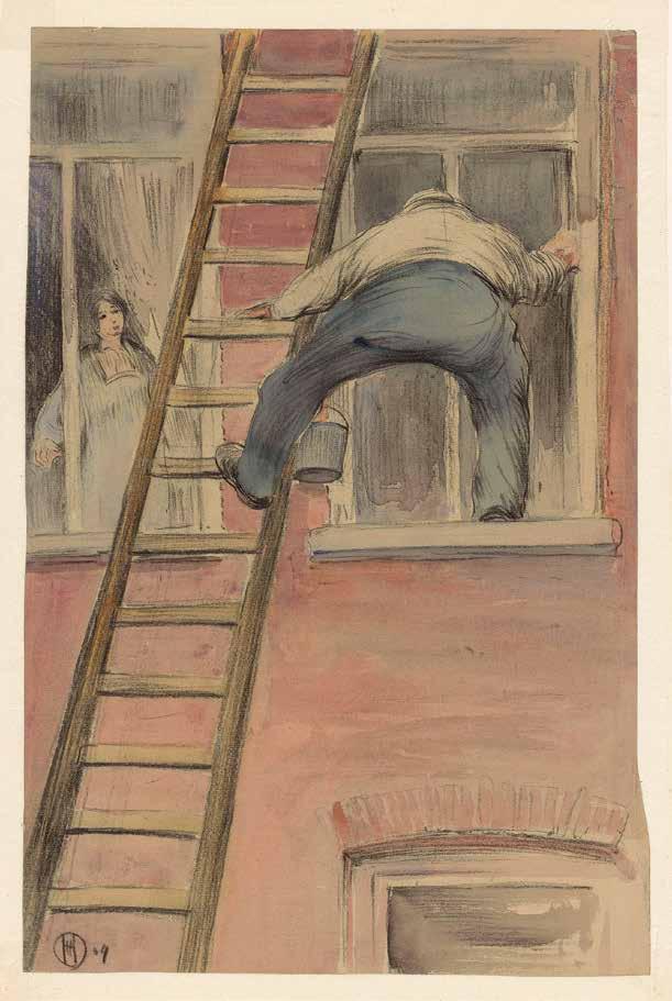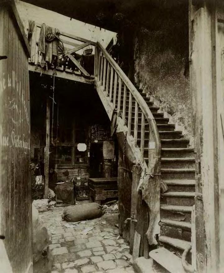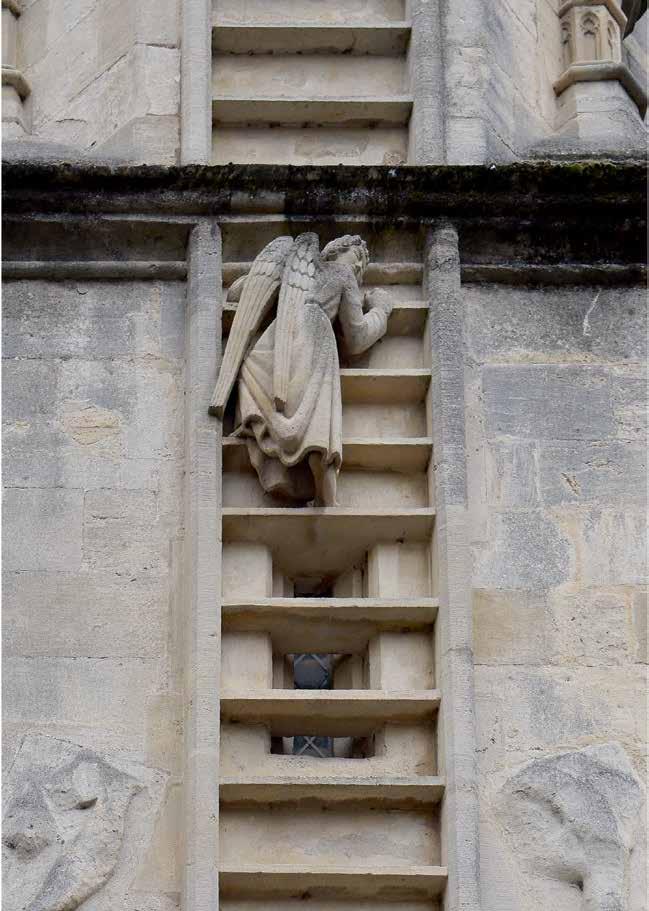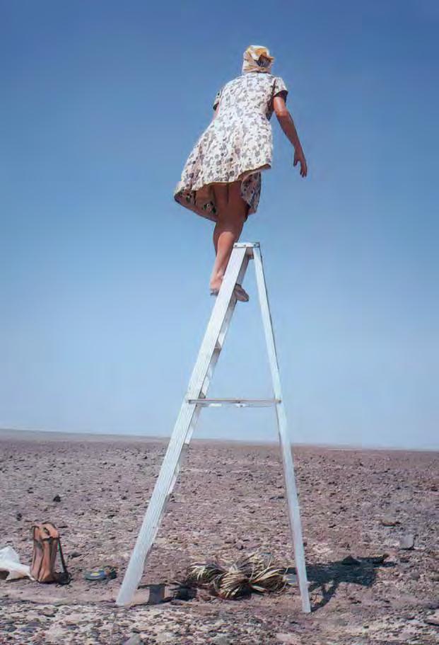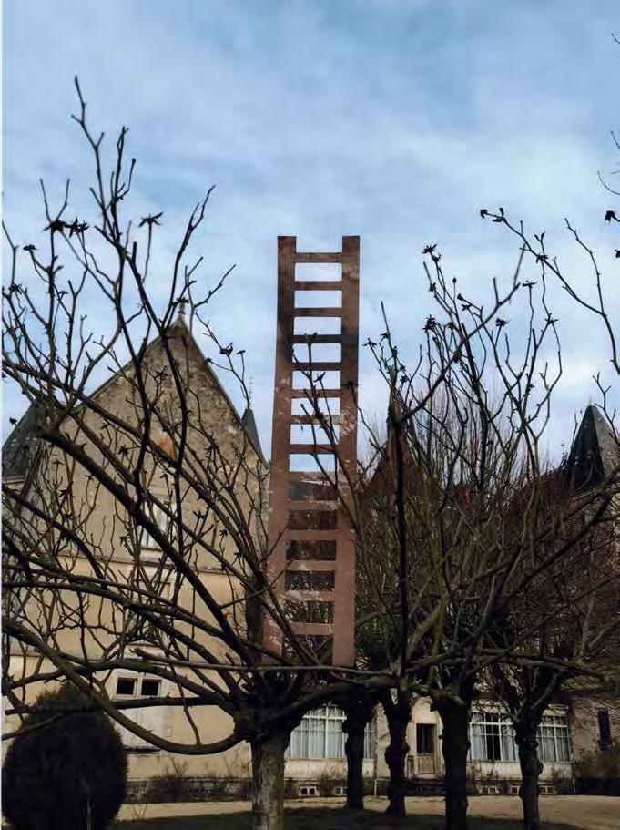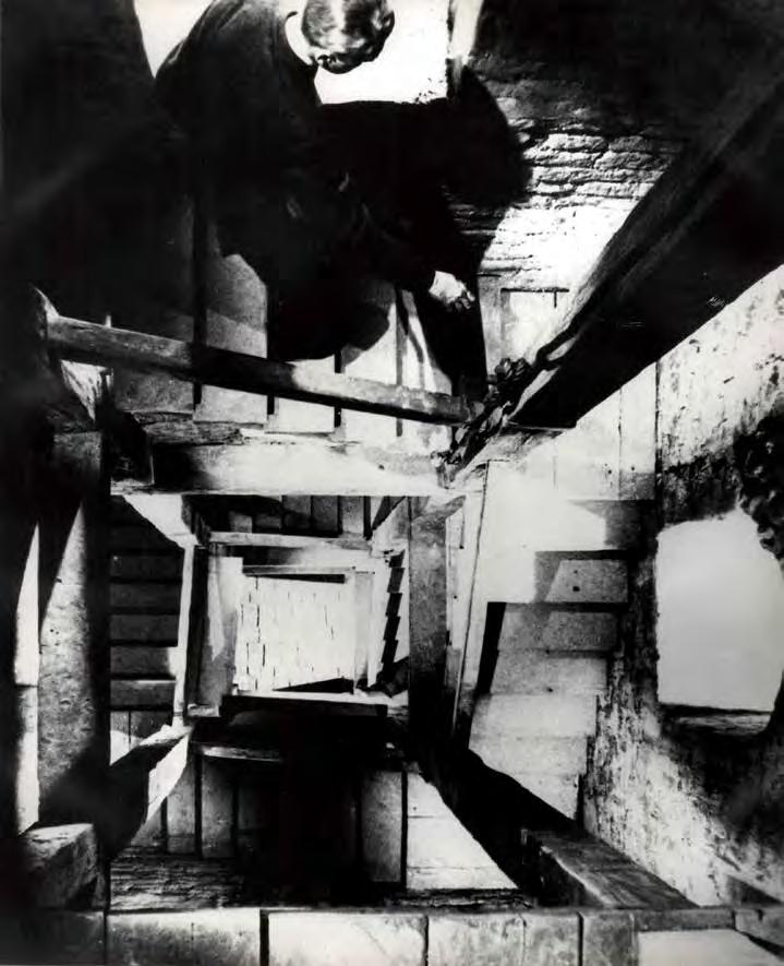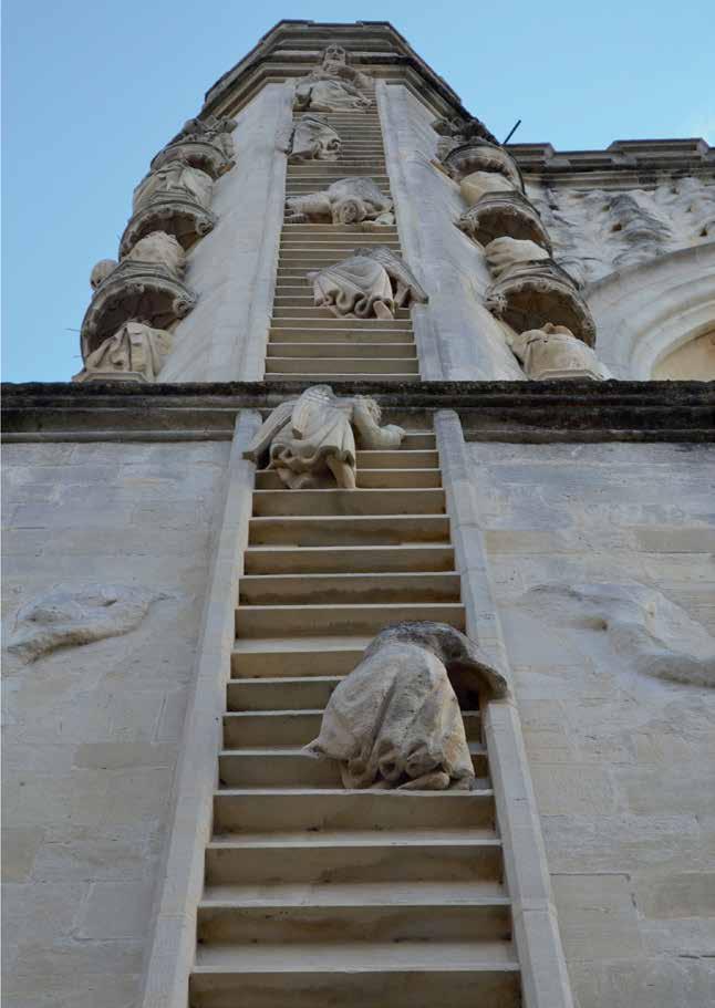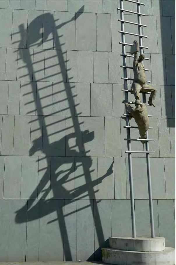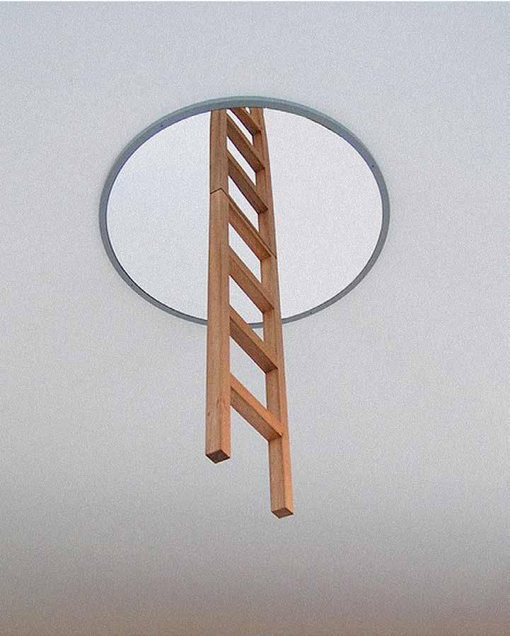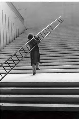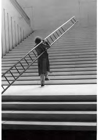 Stairs or ladders can be counted among prototypes dating back to the birth of mankind. The earliest images we know are from the Paleolithic era, 65,000 years ago. Ladders and stairs gure in fairy tales, fables and folk expressions, poetry and myths, as well as classical and modern literature. They appear in ceremonies and rituals as well as on the stage. The obvious narrative element has inspired artists, architects, directors and psychoanalysts to study stairs and ladders in depth. They impart a wide variety of meanings to stairs, building on their traditional form and initial function; the degree of depth and actualization of those meanings depend on the religious or social context of the work. The religious context applies to such themes as the ladder as a link spatially connecting the secular world to heaven; the ladder as the path of or obstacle to spiritual ascent or liberation. In the societal context, on the other hand, the functional structure of stairs determines movement within architecture and society. Stairs provide a convenient way to convey the hierarchy and position of the individual in society, or to describe his evolution, referring to personal or socio-historical memory.