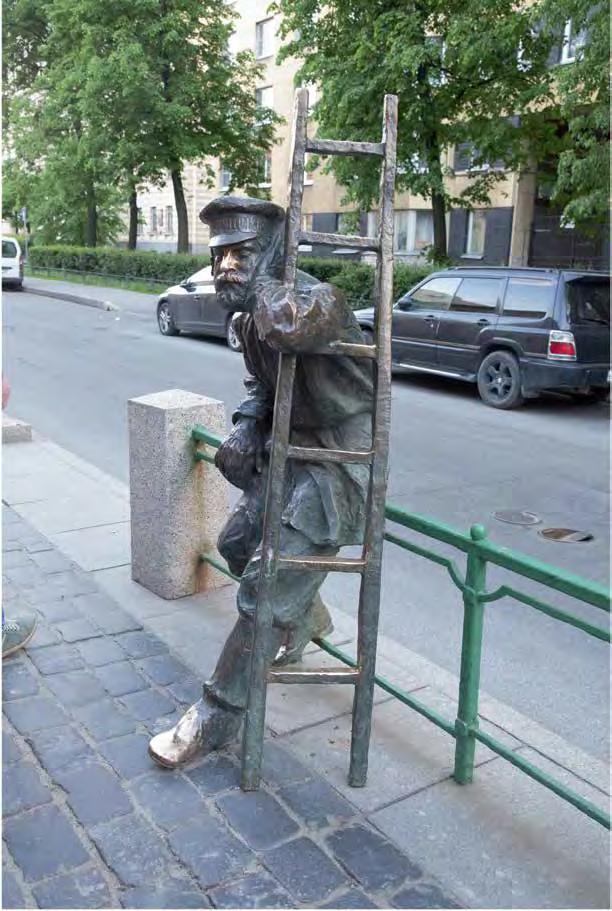 Nonetheless, in another work, “How to Meet an Angel,” Kabakov gives us hope: if a person manages to climb the steps of the ladder 3600 feet toward the sky, an angel will y to him. And here the ladder represents not only the path to another world, but also a chance to see a miracle with one’s own eyes. In this context, the bronze installation of “How to Meet an Angel” on the façade of a clinic for the men-
