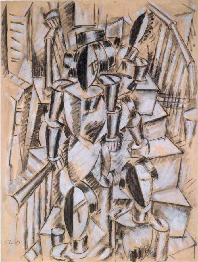 9 (с. 187). Oskar Schlemmer, Bauhaus Stairway, 1932, oil on canvas Visiting Stuttgart in the spring of 1933, Alfred Barr Jr., founder and rst director of the Museum of Modern Art, found that the Schlemmer exhibition had closed after a scathing article in a Nazi newspaper. Barr immediately sent a telegram to Philip Johnson, who had already donated a considerable number of exhibits to the Museum of Modern Art, asking him to purchase the Bauhaus Stairs as a possible gift to the Museum. As Barr later noted, he acted “partly out of a desire to annoy the Nazis, who had just closed the exhibition.” Schlemmer painted the Bauhaus Staircase three years after he stepped down as a teacher at the famous school of modern art, architecture and design. The lattice structure seen in the painting is reminiscent of Bauhaus design principles, while the upward movement, which includes the man on pointe shoes (Schlemmer used to paint ballet scenery) in the upper left corner, symbolizes the optimism that once reigned in the school. The gures, partially cut o by the frame of the picture, help to involve the viewer in this mood, as if they are in the space of the viewer. Simple outlines, as if assembled from modules, make them a kind of generalization, an image of a “man in general”, entering the picture and moving further up the stairs.