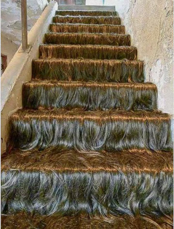 “This is a transition space. For this reason, I was interested in presenting the work there (on the stairs). How can transitional space become a pause? Thus, the movement of stairs has a very forward direction to it. It’s falling forward.”7
