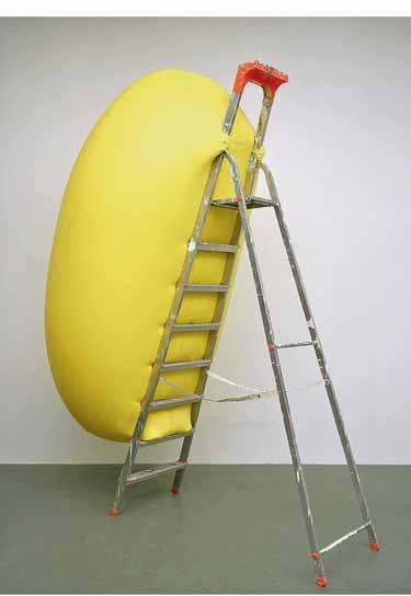 Hans Hemmert, Untitled (yellow sculpture suitable for stepladder), 1998, latex balloon, air, artist, chrome stepladder, 100 × 75 cm