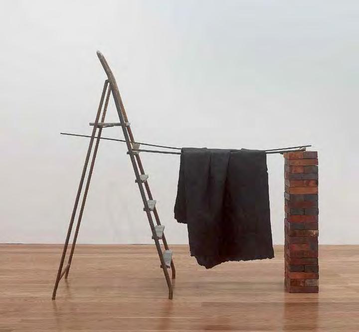 Katinka Bock, A, 2012, bronze, metal ladder, metal bar, refractory bricks, 192 × 135 × 22 cm