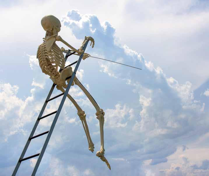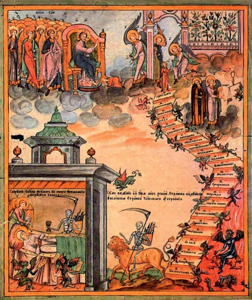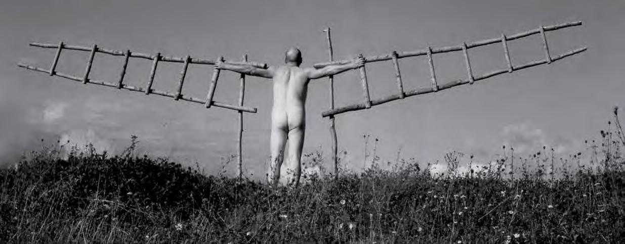 Some Biblical scholars have noted the connection of the heavenly stairway with the Egyptian Ladder of Hathor, along which the souls of the dead ascend to heaven. Based on texts inscribed on the walls of corridors and pyramid chambers, Egyptologists concluded that the inhabitants of Ancient Egypt believed that they could reach the world of the dead only by climbing this ladder, and that deities guarding it (Horus and Set) assisted the deceased, turning the ladder into a path to heaven. During the Ancient and Middle Kingdoms, a wooden model of the ladder would often be placed in tombs; later, priests would draw a ladder on papyrus to illustrate texts from the Book of the Dead. Stairs and ladders as ritual symbols have developed into a familiar metaphor for the passage out of the world of the living. In this context, a ladder appears in the nale of Slava Polunin’s lyrical show “Chu”. The show tells the story of a group of old clowns, who have only one thing left to do as their lives near their end: to leave on time. A ladder decorated with gold funereal tassels, lowered from “heaven”, indicates the solemnity of the moment; but it is not the ladder that predicts the clowns’ departure. At the appointed hour, an angelic guide comes for the hero, who is late, and punches his oneway ticket, thus marking the end…
