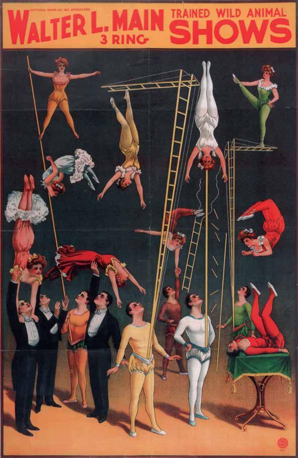 7 (с. 164). Walter L. Main shows, 1930s, advertising poster This Walter L. Main poster depicts performers in white tie and tails, a fashion that had been popular in American circuses for a short time at the end of 19th century and resurfaced from time to time. In reality the impractical costumes had to be adapted.