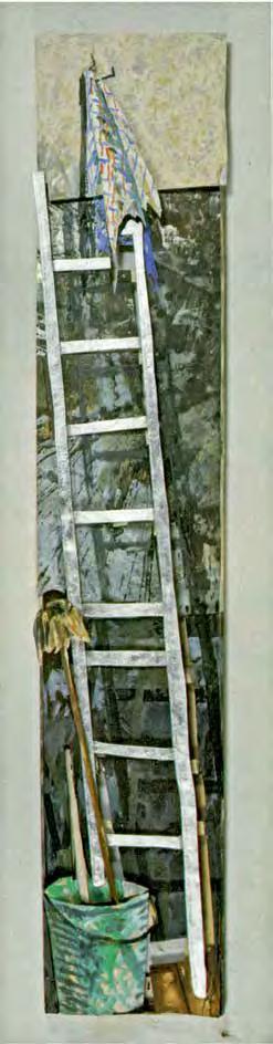 Robert Rauschenberg, Patrician Barnacle (Scale), 1981, solvent, fabric collage, acrylic, mirrored panel, re ector on wood support with stepladder, 238.8 × 94 × 139.7 cm