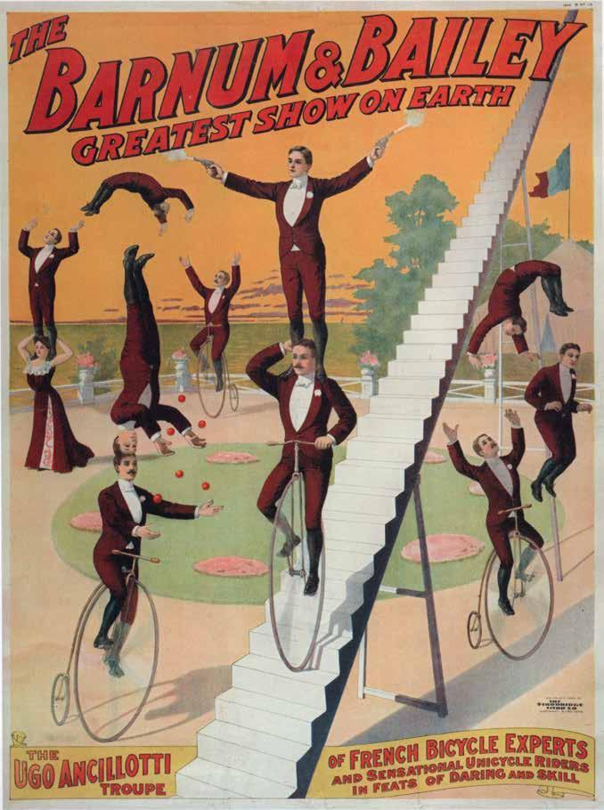 The Italian acrobat Ugo Ancillotti designed several challenging bicycle stunts. Descending a staircase on a unicycle with a partner on his shoulders was not only riveting, it was a remarkable acrobatic feat. The Ancillottis commanded a weekly salary of $1,600 at a time when a clown or a showgirl earned $40.