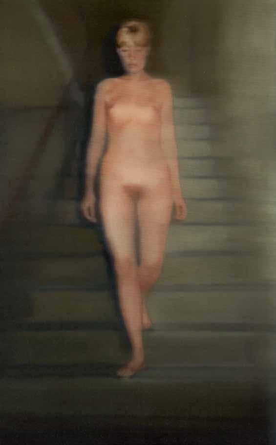 Gerhard Richter’s “Ema. Nude on a staircase” (V1, p. 185), painted in 1966 is a comment on Duchamp’s work. Like Duchamp, Richter based his painting on a photograph. The model was the artist’s wife, descending an ordinary staircase devoid of details that would indicate a particular time. Richter’s almost ghostly image, seemingly woven of dreams and memories, renders Duchamp’s experiment to the limits of traditional portrait painting, a genre much out of favor in the art world of the 1960s. Richter’s painting later served as an inspiration for Bernhard Schlink’s 2014 novel, “The Woman on the Stairs”.