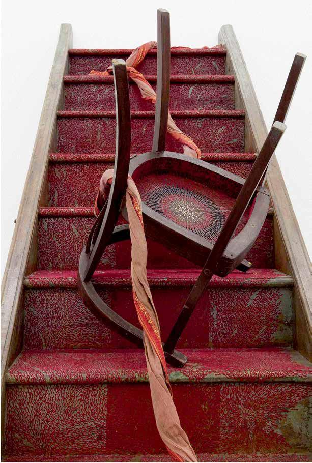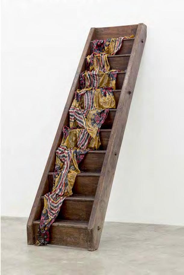 Bharti Kher, The night she left, 2011, wooden staircase, fabric, bindis, 226 × 91 × 80 cm