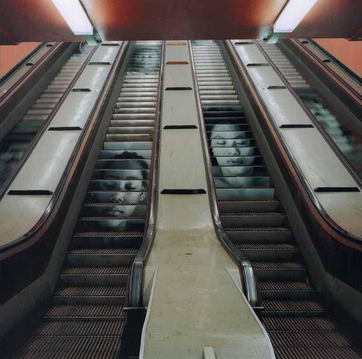 10(с. 191). Stefanie Zoche, Sleeper 1998, digital prints Sleepers is a series of 28 sleeping men and women depicted on an escalator. The theme of sleep can be interpreted as a condemnation of the voluntary care and self-isolation of residents of megacities. The portraits are in constant motion, and each of the people depicted has their own facial expression, slightly different from the others.