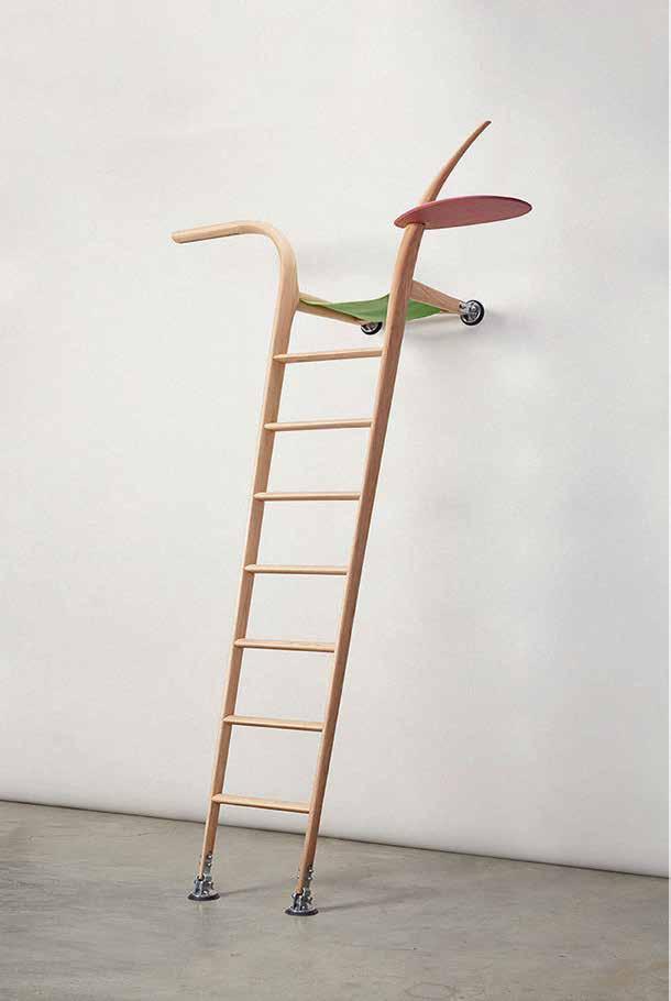 Dora García, Arti cial respiration (Ladder I), 2017, beech wood and two books, 181 × 110 × 75 cm