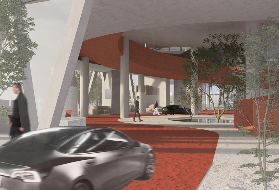 Rendering of 1F office and exhibition area