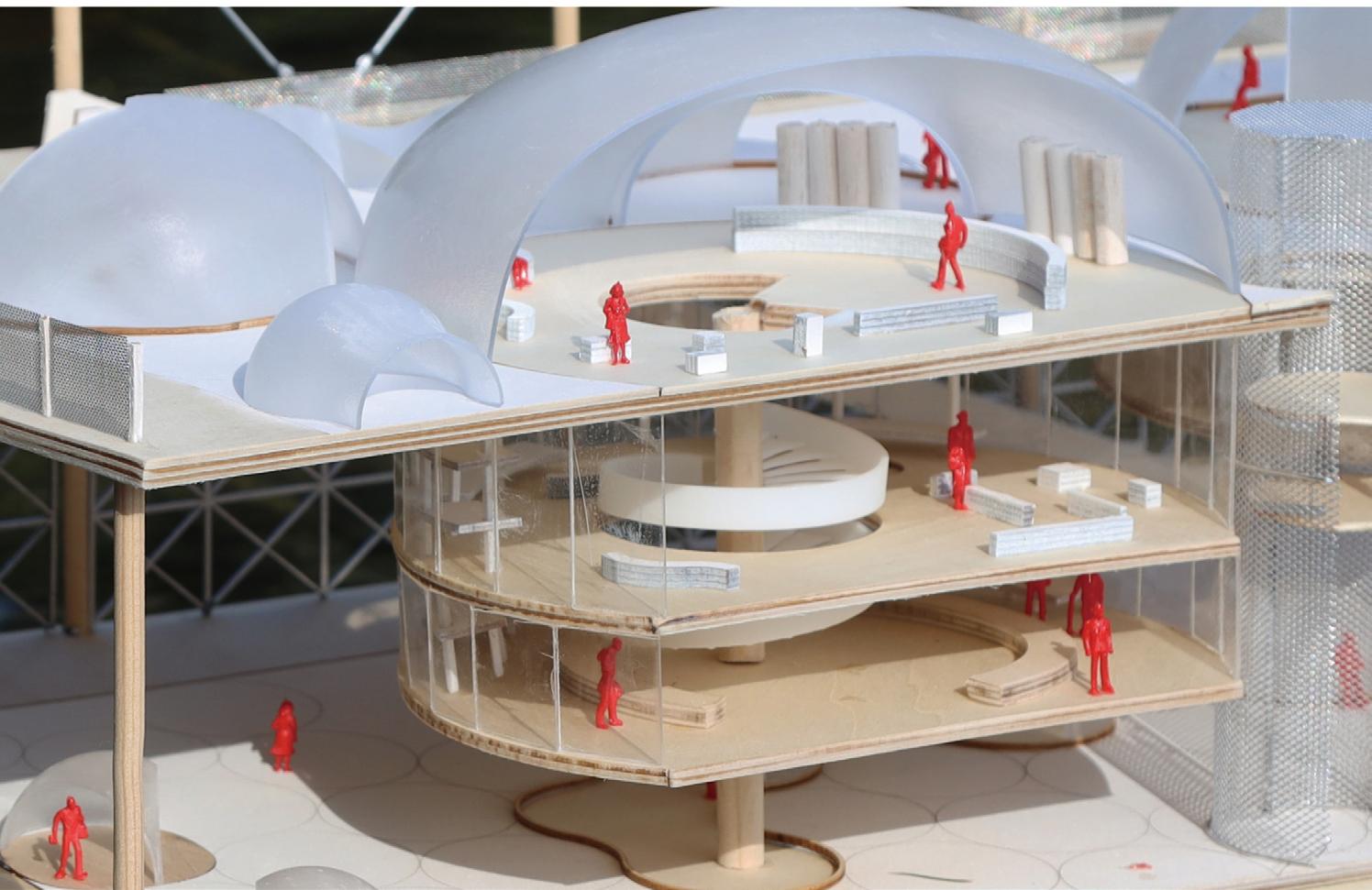 The design scheme adopts the wooden grid structure, which is characterized by a large span, floor overhang , and modular rapid construction. Therefore, we design with 3600*3600mm as the modulus, and the placement of internal functional space also corresponds to the modulus of the grid. The space division law with sliding doors as partitions, combined with the cable car system in the southwest of Bogota, has created a cable car station for exhibition and riding, as well as public services, talent markets , and other comprehensive functions. Finally, it shows a strong sense of integrity and order.