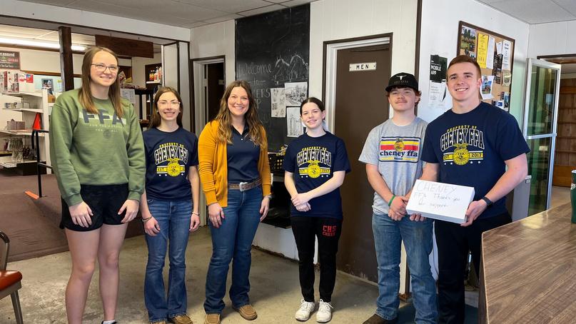 FFA week was celebrated from February 19th through the 23rd of this year. We organized various activities anddress-updaysthatwerebothfunandengaging. The events included a Greenhand lunch, ice cream bars for FFA members, wearing chapter shirts, a canned food drive, and the Western Farm Show. Additionally, three members helped out at the Sedgwick County Conservation Dinner. The main objectiveofFFAweekwastopromotethesignificance of FFA and the impact of agriculture education in our school and community. As a token of appreciation, we gave doughnuts to the businesses that support ourFFAchapter.