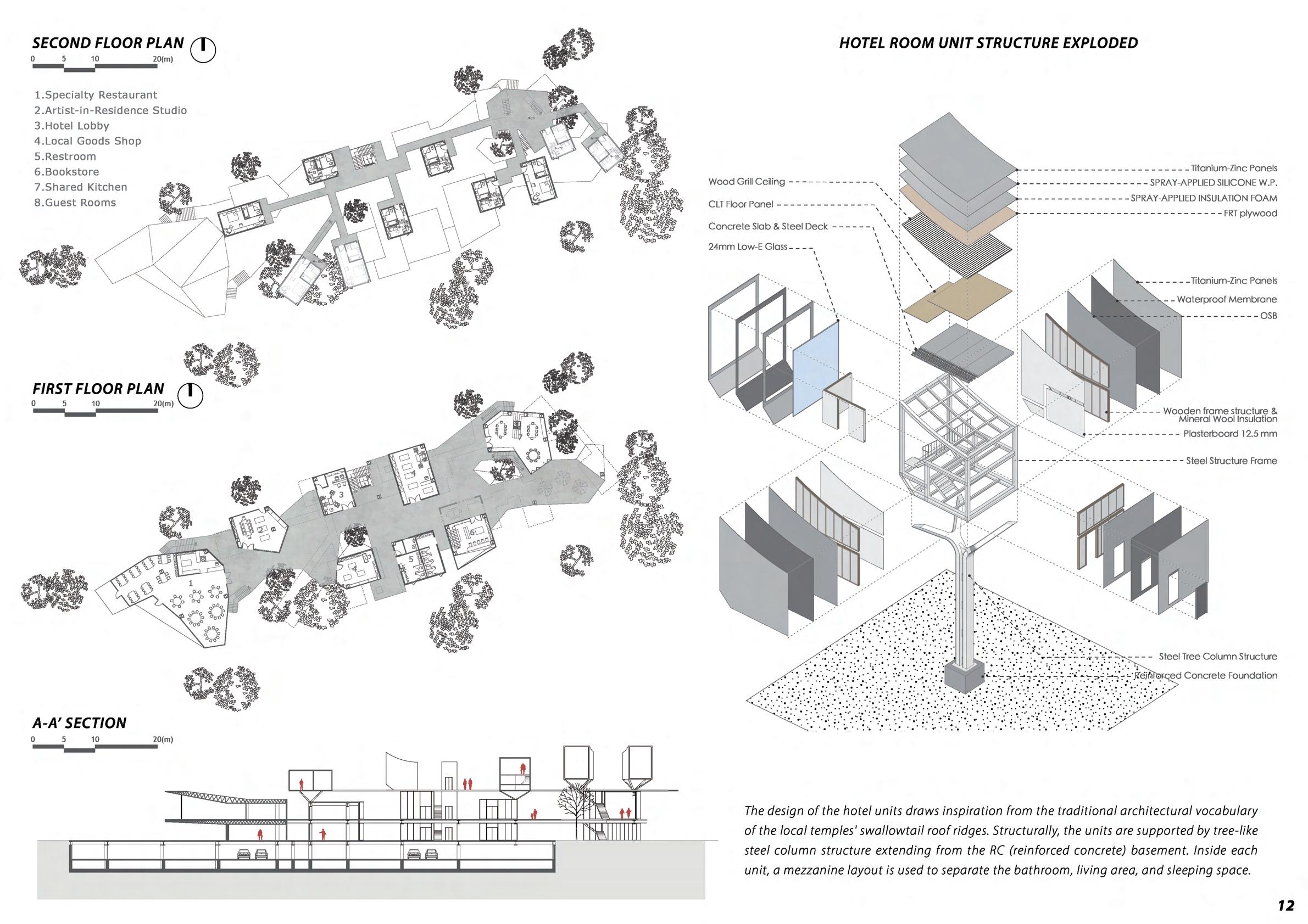 如今,這些臨水的倉庫群正逐漸被活化重生。考量 到棧二庫獨特的地理位置,我將其規劃為一個集商業、 文化創意於一體的混合用途空間。設計中還融合了駐村 藝術家社群及旅宿設施,並將新建體量的視覺影響納入 考量,從海面與都市視角進行設計,塑造出符合其環境 脈絡的新舊整合提案。